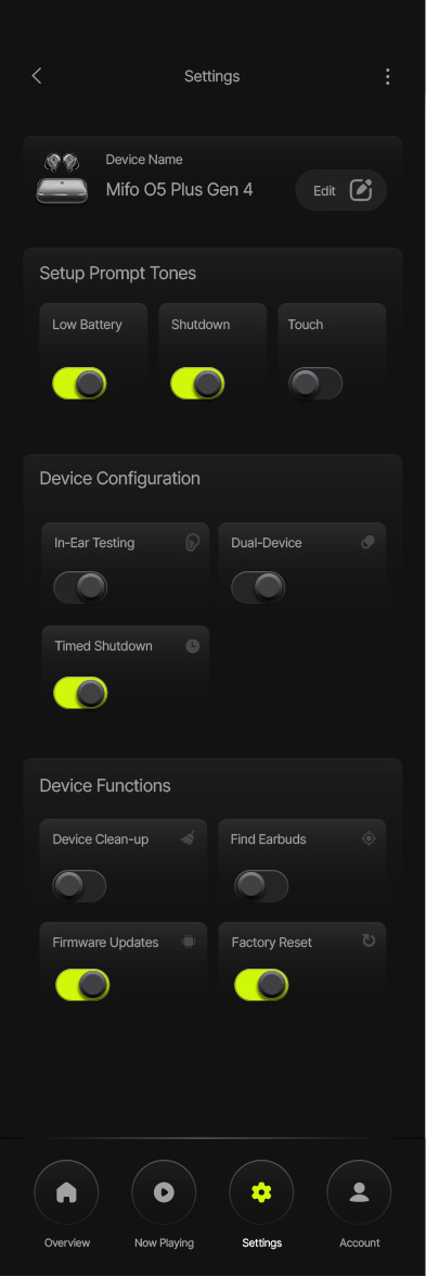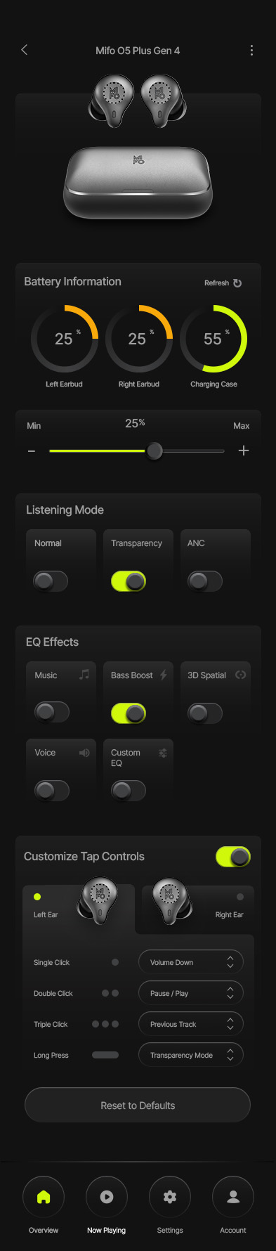 Customize volume, playback, calls, and toggle noise cancellation modes based on habits.